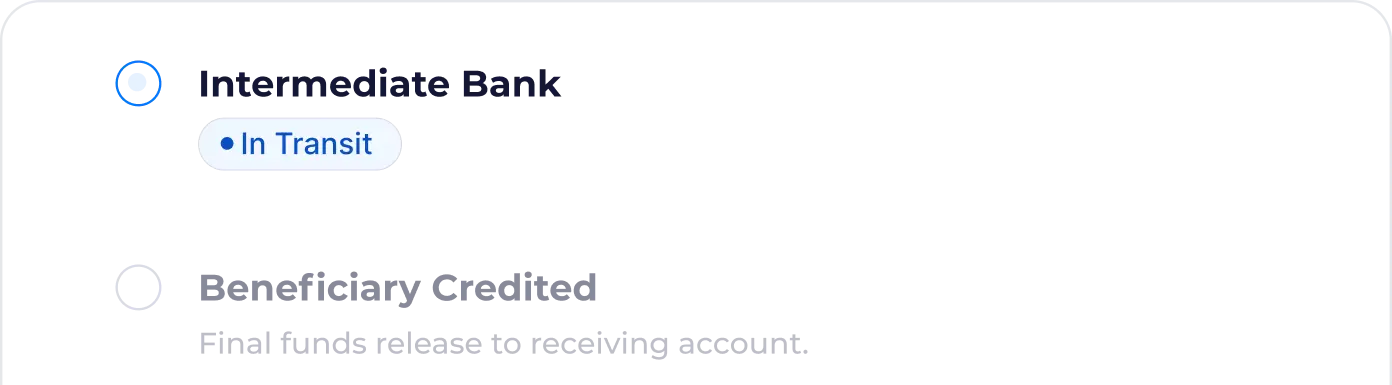 Track payment status from approval to transfer.
